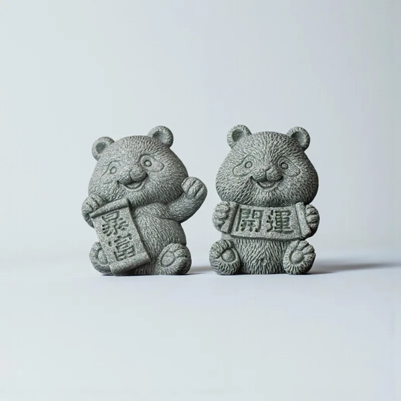 Cyan Sandstone Joyful Panda | Wealth & Luck Decor