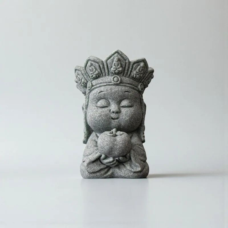 Cyan Sandstone Meditating Monkey King | Mini Zen Warrior Statue (Tea Pet & Aquarium Decor)